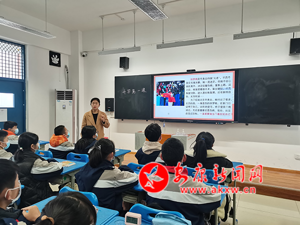 走进汉滨初中高新校区初一年级23班,语文教师刘丽以“‘虎’力全开,做最好的自己”为题,为学生们带来了“开学第一课”。她以经典诗歌《做最好的自己》为切入点,随后通过课件展示了我国冰雪项目运动员谷爱凌、徐梦桃、金博洋等人在冬奥会取得的优异成绩,深入挖掘成绩背后他们拼搏奋发的冬奥精神,引发了学生们热烈响应,纷纷举手表达自己的观看冬奥会的感悟体会。