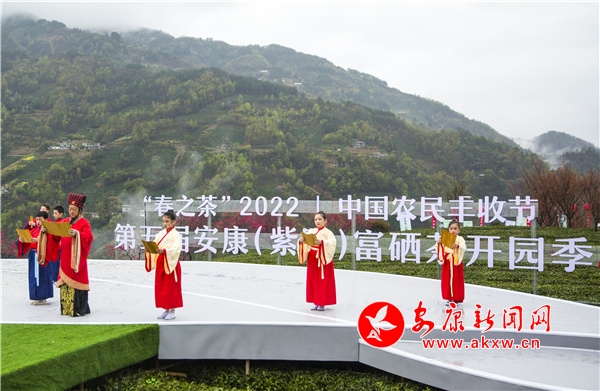 本网讯(记者 李俊 通讯员 郑小虎 陈昌美 )3月22日,中国农民丰收节暨第五届“春之茶”紫阳富硒茶春茶开园活动在紫阳县向阳镇富硒茶观光园举行。至此,标志着紫阳25万亩富硒茶全面进入“采茶季”。