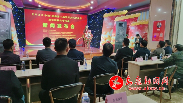 本网讯(记者 赵漪湉)6月4日,2023中国安康第二届赏石文化节艺术节暨全国奇石精品展举行新闻发布会。活动由省宝玉石观赏石协会、省社区文化建设促进会、安康龙舟文化产业发展有限公司、安康市文化产业协会主办,安康市社区文化建设促进会、安康社促会奇石协会承办,汉江流域各省、市赏石(奇石)协会等有关单位协办,将于第23届中国安康汉江龙舟节期间在我市举办。