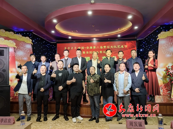 市政协原副主席、市社区文化建设促进会高级顾问、文化名人李启良出席新闻发布会,中国观赏石协会形象大使、省社区文化建设促进会常务副会长、中国汉江石界联盟主席、著名男高音歌唱家周发猛宣布石展活动正式启动。市文化投资发展有限公司、市社区文化产业协会、市书法家协会、安康社促会奇石协会会长和安康文化界、赏石界专家、收藏家等参加新闻发布会。