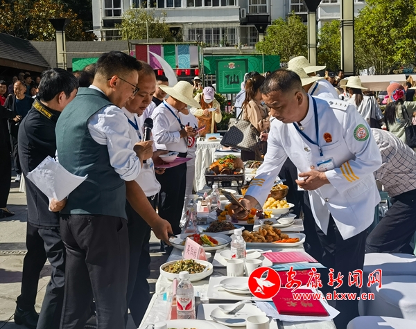 活动现场,来自八仙镇各村组的19组选手,纷纷拿出自己的看家绝活,在现场设置的灶台前,煎、炸、煮、蒸、炒,各式烹饪手法齐上阵,金银蛋卷、洋芋粑粑炒腊肉、天蒜土豆丝、天麻乌鸡汤一道道美味佳肴精彩亮相。