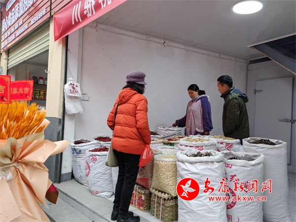 售卖安康各地特产的“05后”经营户郑康正忙着给顾客称魔芋豆腐、打包。他表示:“我们是从兴安菜市场迁到这里来的,这边感觉人流量更大一些,更热闹了,而且生意也要比以前更好,交通也比以前要更方便。”