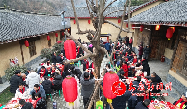在古色古香的四合院内,小方桌依次排开,皮影戏精彩亮相。疱汤宴上,各种美食轮流上桌,让现场游客大饱口福。活动还邀请了书法爱好者挥毫泼墨,免费书写春联,吸引了不少村民前来领取。
