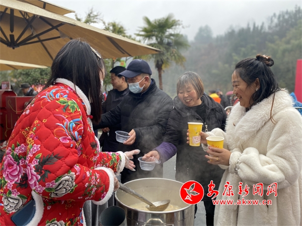 现场还开展了形式多样的农特产品展销、美食体验等系列农文旅活动,让现场群众感受了新春“赶大集”的热闹氛围。同时还进行了写春联、送福字、照全家福等年俗活动,为大家送上新春祝福。活动当天恰逢“腊八节”,主办方制作了腊八粥,免费向观众提供。