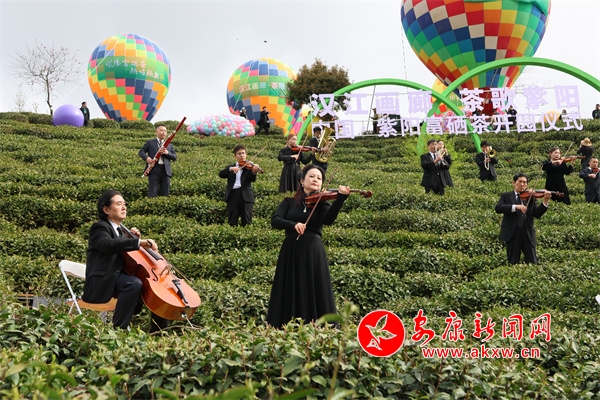 开园仪式有茶山实景演艺、紫阳民歌联唱、祭茶神仪式、华服秀等。上午10时,开园仪式在沉浸式交响乐《春之声》中浪漫开场,乐团成员分布在茶园间,音符随山风流淌,乐声与茶山风光交相辉映,观众置身茶园,仿若与自然共谱春之乐章。茶山大秀《生生不息》以天地为幕、茶园为台,采茶号子响彻山谷,7位紫阳民歌手带来的联唱《山河共鸣》,以原生态唱腔配以舞蹈演员的灵动演绎,唱响茶乡人民对自然的敬畏与生活的热爱。整场演出高潮迭起、亮点纷呈,令嘉宾和游客们流连忘返。