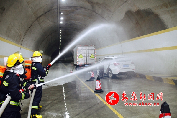 本网讯(记者 张乔) “报告,接110指令,541国道151KM+000M处柏枝垭隧道内发生一起小轿车与危险化学品运输车发生追尾碰撞交通事故,可能发生危化品泄露泄露、燃……