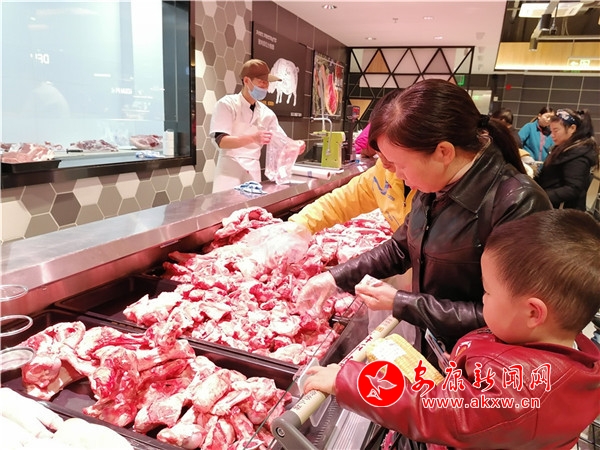 本网讯(实习记者 马娟)“特价前腿肉23.8元一斤,欢迎新老顾客前来选购。”喜盈门超市广播着特惠价格信息,很多顾客闻声而来,挑选猪肉。“五花肉、前腿肉的价格……