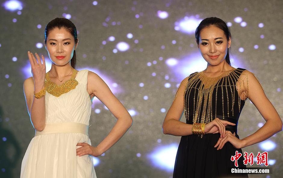 靓丽的模特、耀眼的黄金内衣……8月6日晚,一场以黄金为主题的时尚秀在南京国际会议中心上演,轮番登场的模特精彩演绎紫金爱涛珠宝所带来的独特魅力,其中一款价值过百万、用万足金打造的内衣更是令现场的观众过足了眼瘾。 泱波 摄FbY安康新闻网