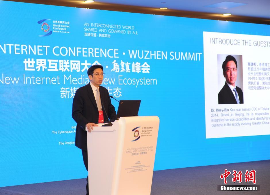 11月19日,澳大利亚电信大中华区CEO高瑞彬在乌镇举行的首届世界互联网大会新媒体分论坛上发言。当天,世界互联网大会在浙江乌镇拉开帷幕。 中新社发 李晨韵 摄