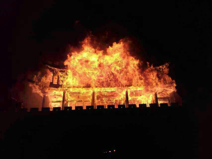 云南大理明代古城楼失火被烧毁