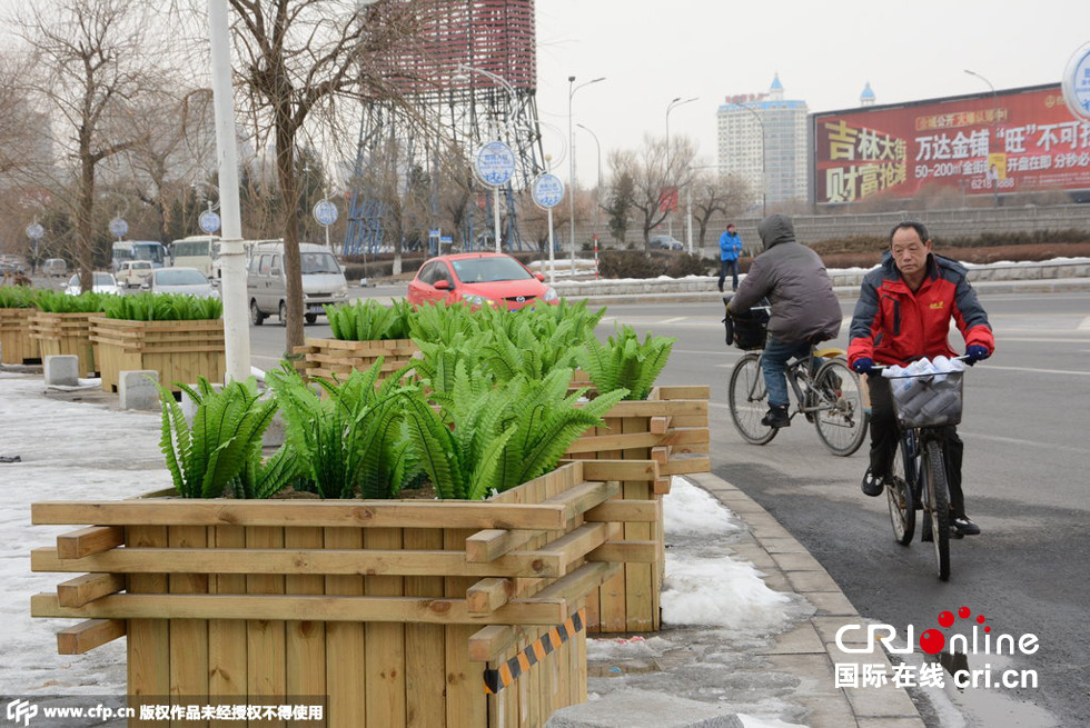 吉林街头安插“油麦菜”假花搞绿化