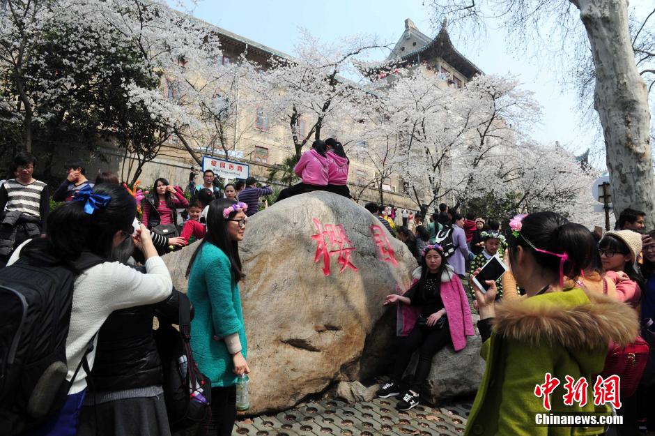 3月21日,武大樱花盛开游客如织。当日,武大樱花盛开的首个双休日。长约200米的樱花大道上1000多株樱花竞相绽放,吸引着数万游客,使宁静的校园变成了热闹的公园。中新社发张畅 摄Suf安康新闻网