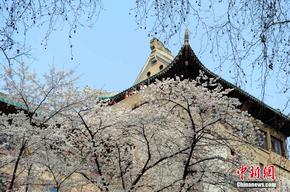 武大樱花尽开放 游客挤爆校园