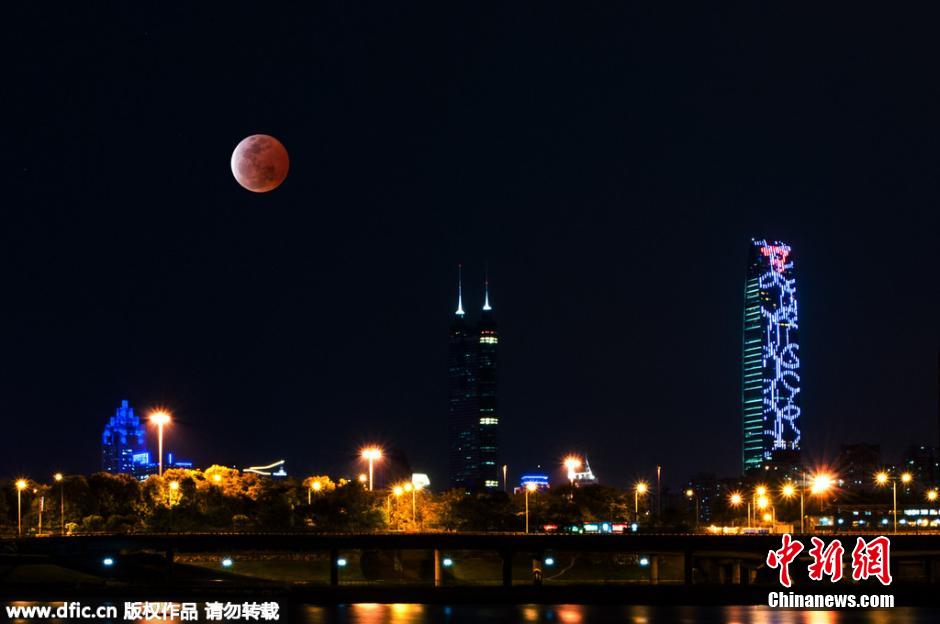 2015年4月4日,红月亮现深圳夜空。(合成)邓飞 摄