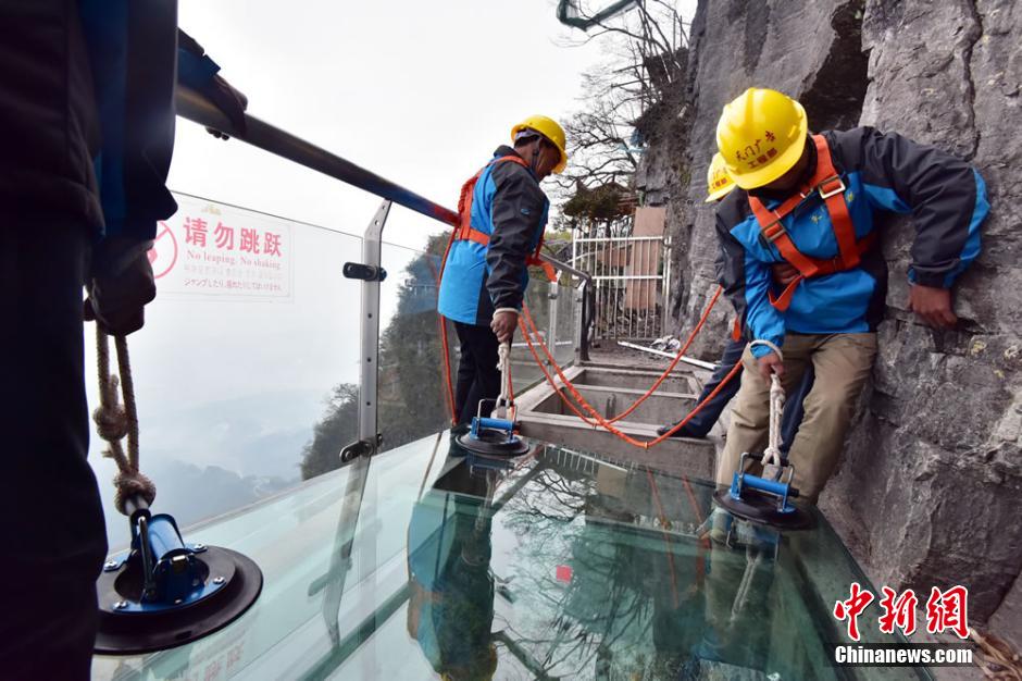 张家界天门山玻璃栈道换“新装”