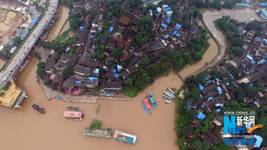 航拍2015年最大洪峰过境后的重庆城