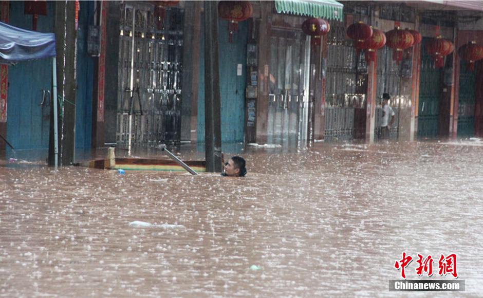 连日豪雨致广西边境城市东兴成汪洋