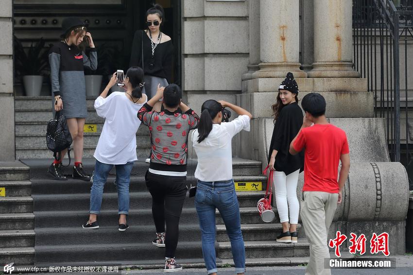 网店模特一天街拍200套 为省时当街换装