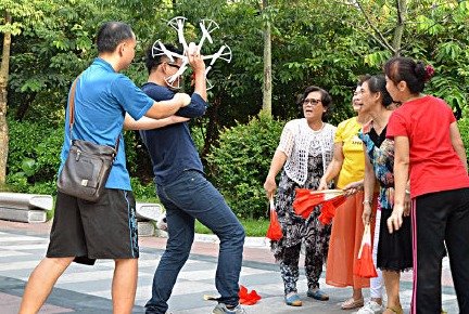 小伙创意无人机送月饼劵给女友 遭大妈哄抢