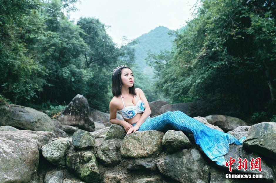 江西龙虎山上演真人版“美人鱼Twins”