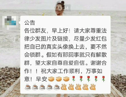 【传闻】有桂林网民表示收到了一条“中国网络监控在清理整顿,要求微信群友将头像更换为个人真实头像,否则会被锁群,群成员的手机号也会被控制”的消息。