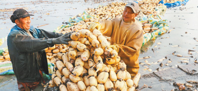 初冬时节,江苏省灌云县的4.3万余亩藕塘迎来采藕季。RzW安康新闻网