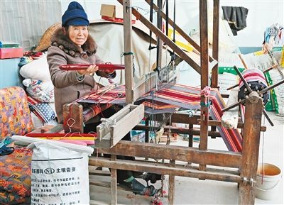 在西安市鄠邑区玉蝉镇的一个村庄里,67岁的农妇周妙娃正在使用一台四十年多前的土织布机织环保床单,土织布机由木头制作,这种木质结构的土织布机已经有上千年的历史,村子里以前有不少人织土布。如今,大家都转型种葡萄了,大多数家都把土织布机拆了,仅周妙娃家还保留了一台。