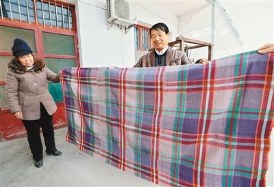 村上邻居们知道了,纷纷把旧毛衣送到她家来,要求改成漂亮的环保床单。也有镇上的人慕名登门,送来加工费和一堆旧毛衣,要求织成环保床单。所以,一年到头,老太太都闲不下来。 (文/图 记者 谢伟)