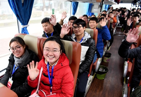 当日,2018接阜阳籍大学生回家活动在安徽农业大学启动,来自安徽农业大学、安徽医科大学、合肥工业大学等高校的200余名阜阳籍大学生免费乘坐大巴车返回家乡过年。新华社记者 刘军喜 摄s3Y安康新闻网