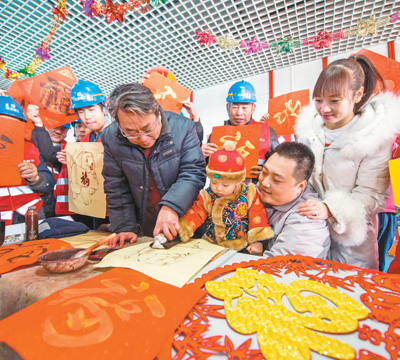 2月7日,北京木版年画匠人张阔正为北京建工集团总承包部A2工程项目部的工人们现场印制生动的狗年木版年画。再过几天就要过年了,北京市文联组织艺术家们为这些北京副中心的建设者们送上春联年画和祝福。(记者 徐烨 摄) wvQ安康新闻网
