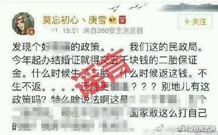 春节期间,一条关于“二胎保证金”的消息热传,称有地方实施婚姻登记时先行收取5000元“二胎保证金”,“什么时候生什么时候返,不生就不返”。