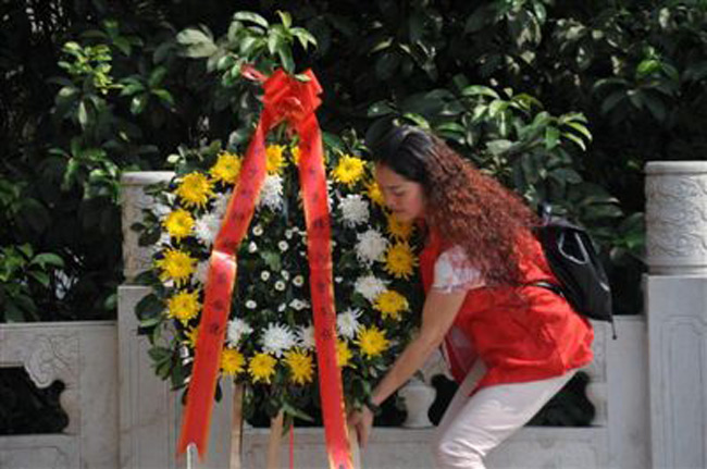 图为张宜碧在烈士陵园做志愿者