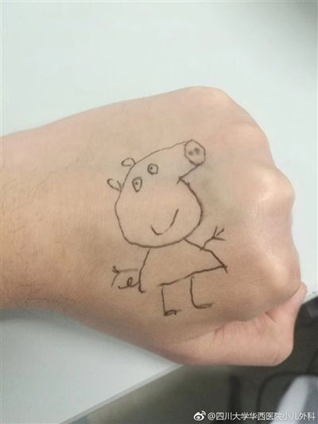 “小猪佩奇身上纹,值班用来哄病人。”4月7日,四川大学华西医院小儿外科主治医师杨磊为了让患者小朋友们心情愉悦,主动在左手上画了一只流行卡通人物小猪佩奇来“讨欢心”。因为遵守无菌原则,小猪佩奇很快就被洗掉,但这一幕还是被网友点赞,认为“有爱且专业,感控爱心都需要。”