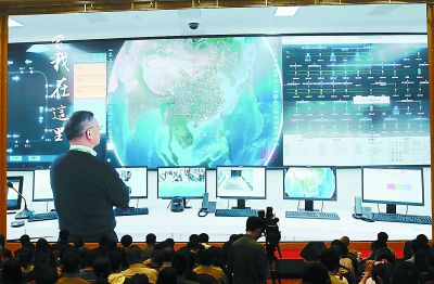 昨天,在中关村国家自主创新示范区展示中心,人们通过大屏幕观看中关村海淀园“创新工匠”候选人的研究成果展示。(记者 饶强 摄)