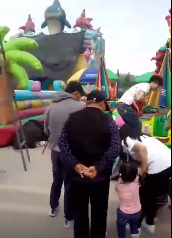 网传的10秒长的小视频显示,在一个游乐场中,一名年轻女子坐在地上不断哭喊,在其旁边的游乐设施上,一名男子抱着一个孩子,地上满是鲜血。视频所配文字称:“这是某地今天发生的,以后不要带孩子坐这个玩具了!”其中,“某地”被传为河北石家庄、云南大理、陕西汉中、湖北孝感等多地的游乐场,引发网民关注热议。