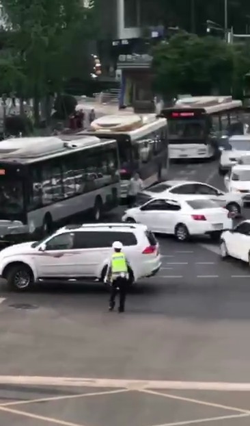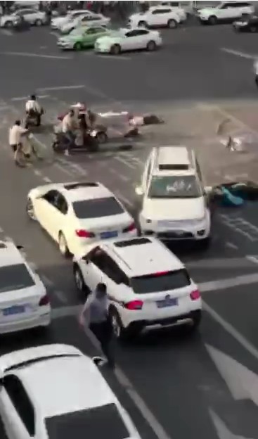 事故发生后,网上流传着关于该案的现场视频。一辆白色越野车在原地多次转圈后,从顺城大街逆向往盐市口方向冲去,路口等待的多辆电瓶车被撞倒,最终撞向一辆白色汽车后停止。随即,路口执勤交警和公安将肇事车驾驶员控制。
