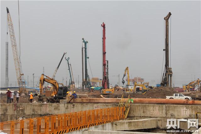 27日,珠西综合交通枢纽江门站施工现常(央广网记者巩盼东 摄)