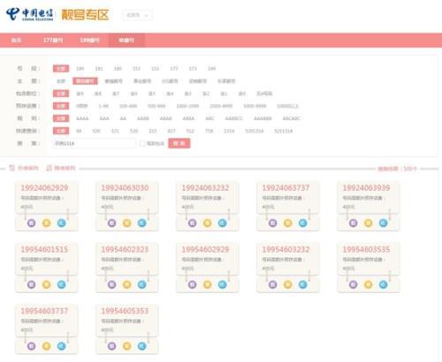 某运营商展示的“靓号”。图片来源:某运营商官网截图