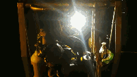 20时30分,第十批潜水员下水,起吊前最后检查确认水下公交车的姿态。