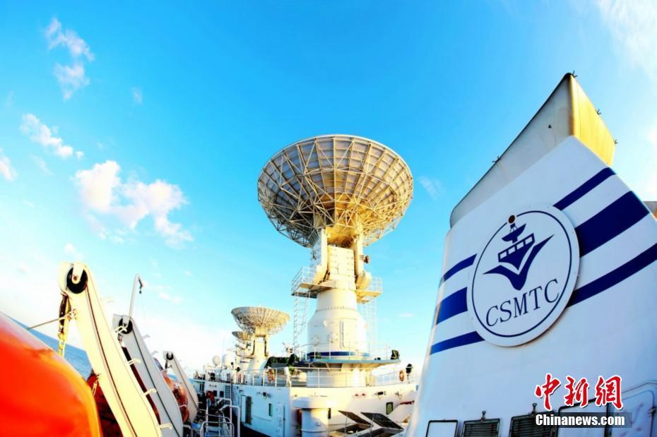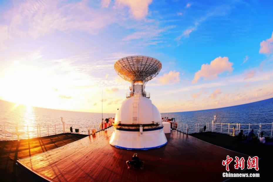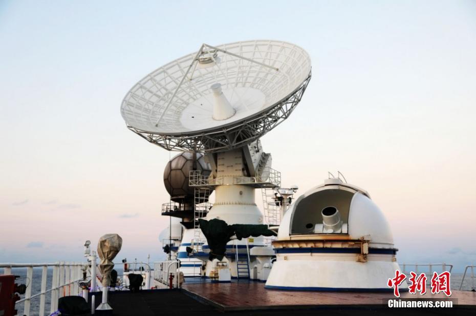 火箭升空飞行20多分钟后,远望3号船在距离祖国万里之遥的大洋深处及时发现并成功捕获目标,船载USB统一测控系统迅速接收到火箭遥测参数,并及时处理传送至西安卫星测控中心、西昌卫星发射中心,为中心判断火箭飞行状态提供重要依据;两套船载航天测控设备同时对火箭及卫星开展测量工作,并及时、准确计算向西安卫星测控中心提交了高精度数据,整个海上测控过程持续近10分钟,为火箭三级二次关机、星箭分离等一系列关键动作提供了有力测控支撑。图为深夜,远望3号船精准测控。 高超、何露东杰/文 亓创 摄