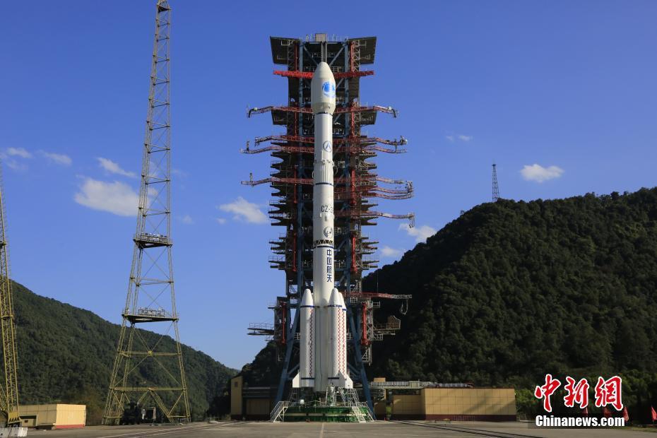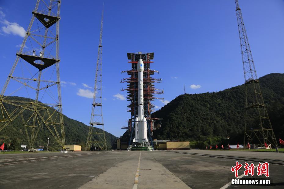 11月1日深夜23时57分,中国在西昌卫星发射中心用长征三号乙运载火箭,成功发射第41颗北斗导航卫星。这颗卫星属于地球静止轨道卫星,是中国北斗三号系统第17颗全球组网卫星,也是北斗三号系统首颗地球静止轨道卫星。图为卫星发射前,星箭组合体蓄势待发。中新社发 史啸 摄