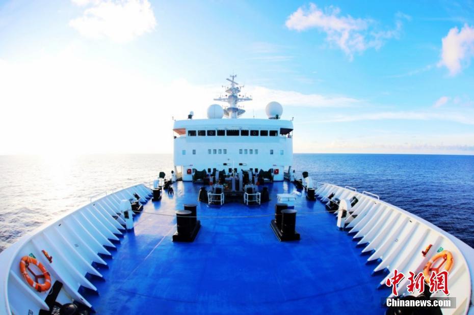 北京时间11月1日23时57分,中国在西昌卫星发射中心用长征三号乙遥四十一运载火箭,采用“一箭一星、间接入轨”的方式成功发射北斗三号工程高轨首发星GEO-1卫星,远望3号船在太平洋预定海域圆满完成海上测控任务。图为远望3号船在大洋深处劈波斩浪。 高超、何露东杰/文 亓创 摄