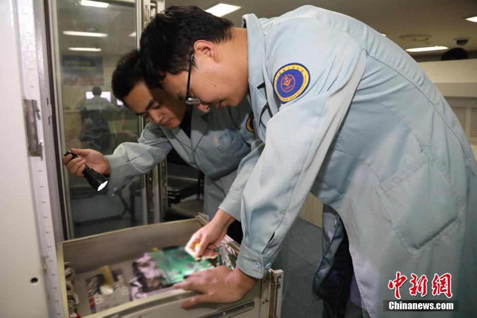 远望3号船副船长王小兵介绍说:“任务前,我们做了大量软硬件技术状态验证、信号特征分析等工作,任务中,还特别关注目标信号变化趋势以及各类重要事件,及时准确下达了调度指挥口令,确保了指挥流畅、上下协同、任务圆满。”图为测控系统岗位人员严阵以待。 高超、何露东杰/文 何露东杰 摄