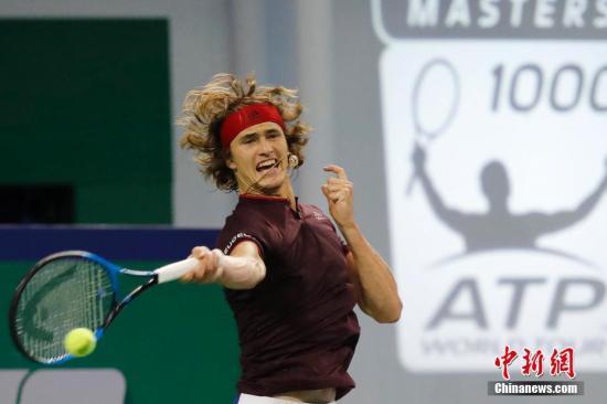 资料图:小兹维列夫击球瞬间。殷立勤 摄