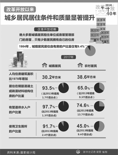 改革开放40年,我国城乡居民从吃穿住用的品质,到能够享受的医疗教育服务水平,都发生着重大的变化,生活质量不断提升,食品支出比重明显下降,服装时尚化,耐用消费品升级换代。移动电话、计算机、汽车走入寻常百姓家。2017年,城镇居民平均每百户拥有移动电话235部,计算机80.8台,家用汽车37.5辆;农村居民平均每百户拥有移动电话246部,计算机29.2台,家用汽车19.3辆。