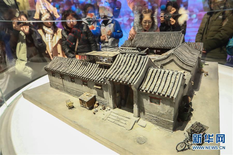 12月18日,参观者在“伟大的变革——庆祝改革开放40周年大型展览”上观看老北京四合院模型。 截至当日,在中国国家博物馆举行的“伟大的变革——庆祝改革开放40周年大型展览”累计参观人数突破160万人次。 新华社记者 张玉薇 摄