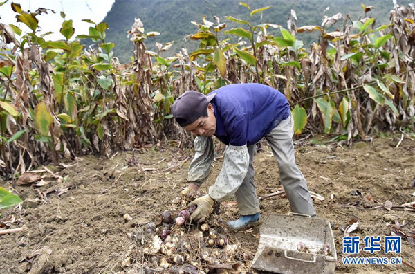 12月26日,河池市金城江区九圩镇板岜村中乐屯村民装运新收获的旱藕。 广西河池市金城江区与农业科研机构合作,积极引导群众因地制宜发展特色种植,采劝公司+农户”的模式,开辟出一条特色农业致富路径,助力乡村振兴农民增收。 新华社记者 周华 摄wQM安康新闻网
