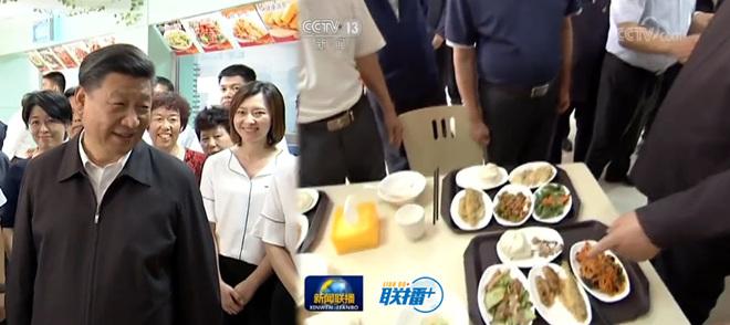 2018年6月12日,在青岛市李沧区上流佳苑社区便民食堂,习近平同正在这里用餐的居民热情交谈,询问饭菜可不可口、价格贵不贵、对社区便民服务还有什么新要求。习近平还沿着小道步入社区,察看社区整体环境和居民居住情况。他叮嘱“把更多资源、服务、管理放到社区,更好为社区居民提供精准化、精细化服务”。