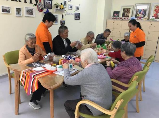 2018年11月6日,8位年龄在79至92岁的老人正在做手工。习近平与他们一一握了手。来源:央视新闻