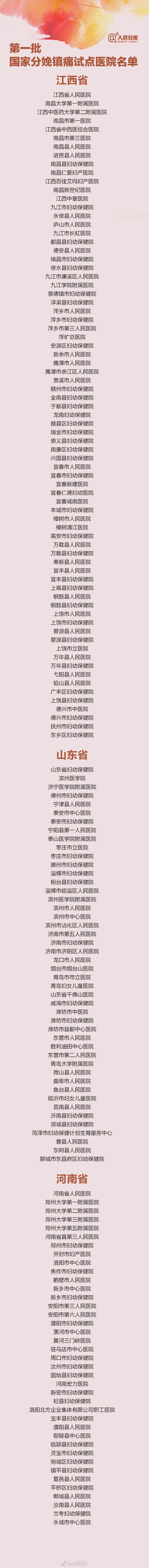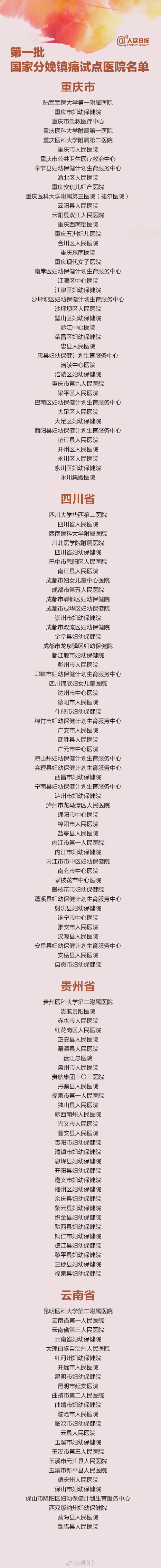 转存!首批国家分娩镇痛试点医院名单来了!